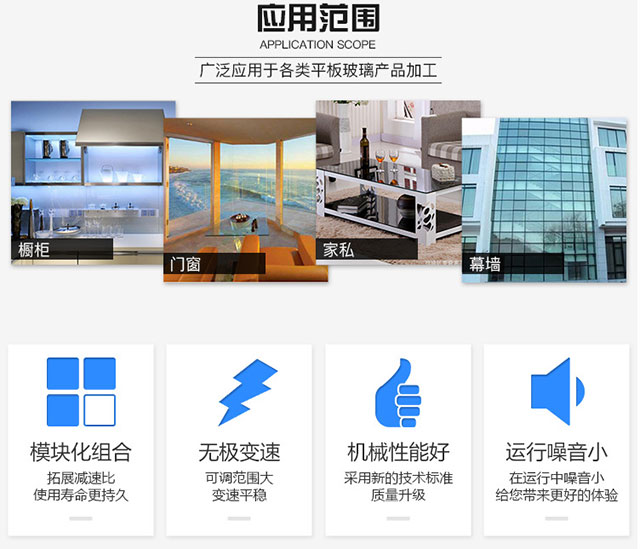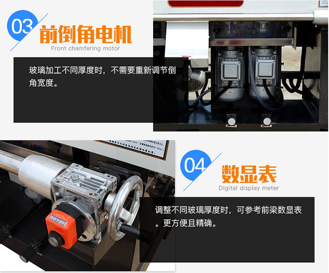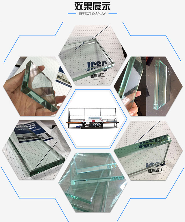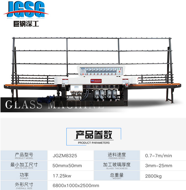 JGZM8325型適用于不同尺寸和厚度的平板玻璃的直邊和棱角磨削,粗精磨拋光一次完成,拋光后的平面接近于玻璃母體的光潔程度,調(diào)整不同加工厚度時,可參考前梁上數(shù)顯表進行調(diào)整,前倒角磨頭能隨前梁同步移動,具有結(jié)構(gòu)先進;精確度高,操作方便,同一厚度可連續(xù)加工等優(yōu)點,是玻璃深加工必備的加工設(shè)備。