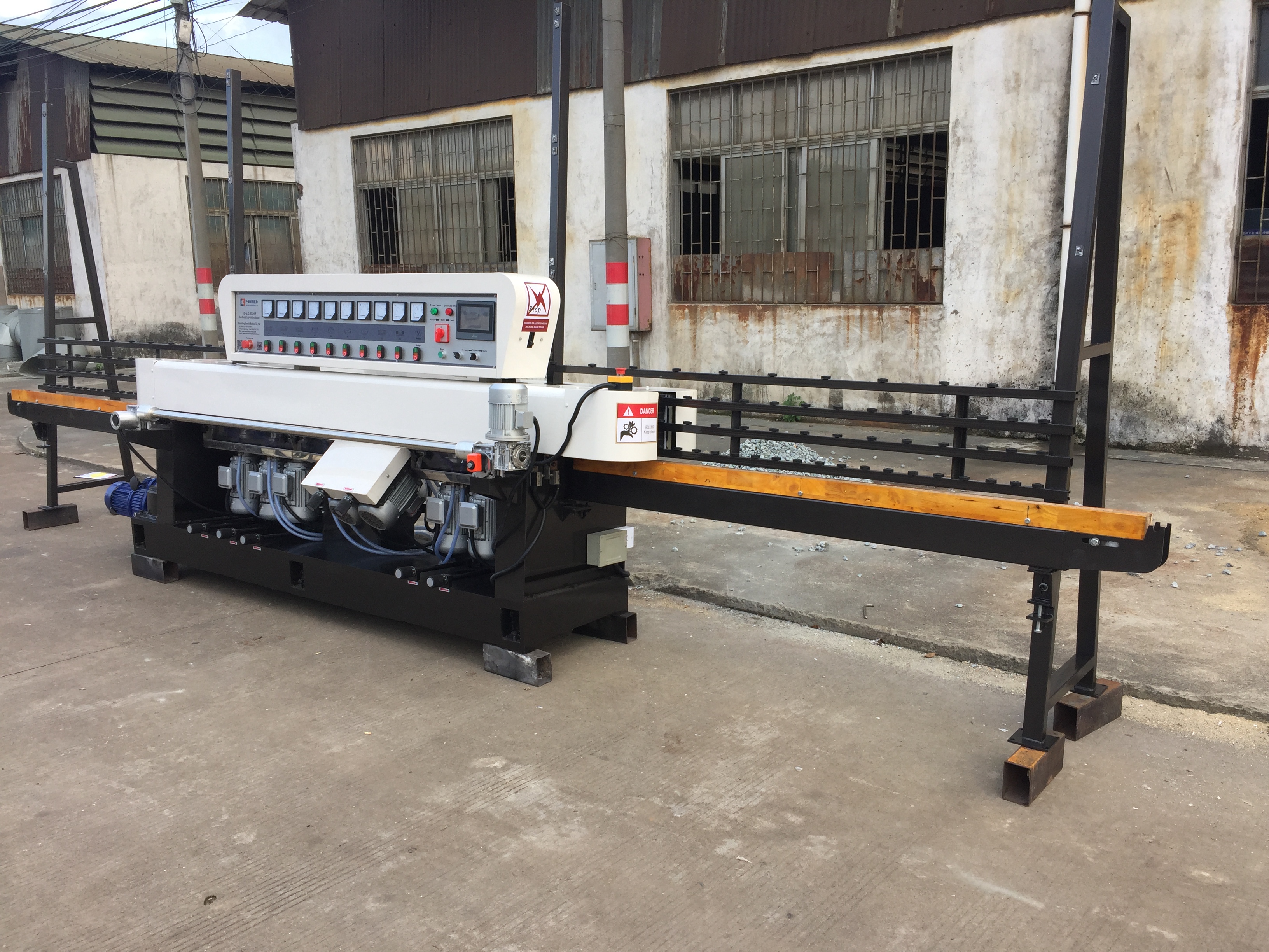 該機(jī)適用于不同尺寸和厚度的平板玻璃的直邊底邊和棱角磨削,粗精磨拋光一次完成,拋光后的平面接近于玻璃母體的光潔程度,調(diào)整不同加工厚度時,(可參考前梁上的數(shù)顯表進(jìn)行調(diào)整),前倒角磨頭能隨前粱同步移動,具有結(jié)構(gòu)先進(jìn);精確度高,操作方便,同一厚度可連續(xù)加工等優(yōu)點(diǎn),是玻璃深加工必備的加工設(shè)備。