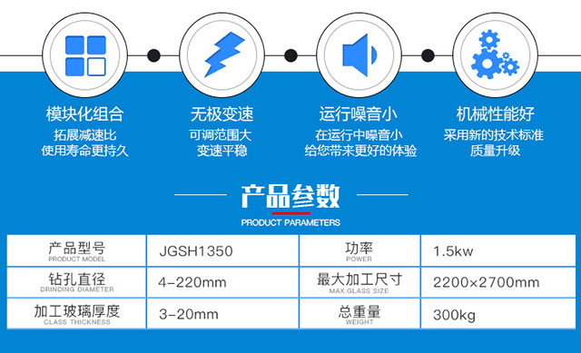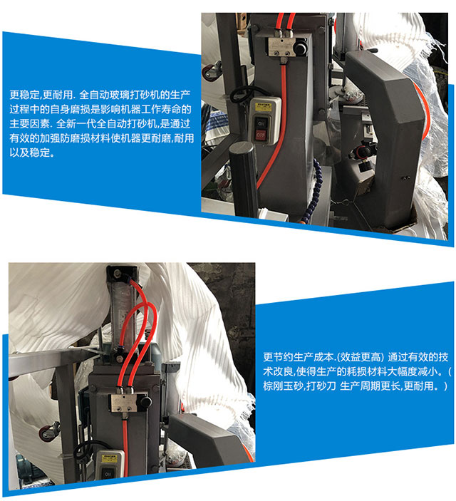 本機可氣動可吸盤壓穩(wěn)平板玻璃,可將玻璃直角修成形為:圓邊、方邊、鴨嘴邊等??蓺鈩由的ヮ^,可同時裝兩個磨輪進(jìn)行粗磨、精磨及拋光。