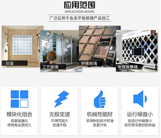 2..該機(jī)適用于大批量削磨平板玻璃的斜邊和底邊,